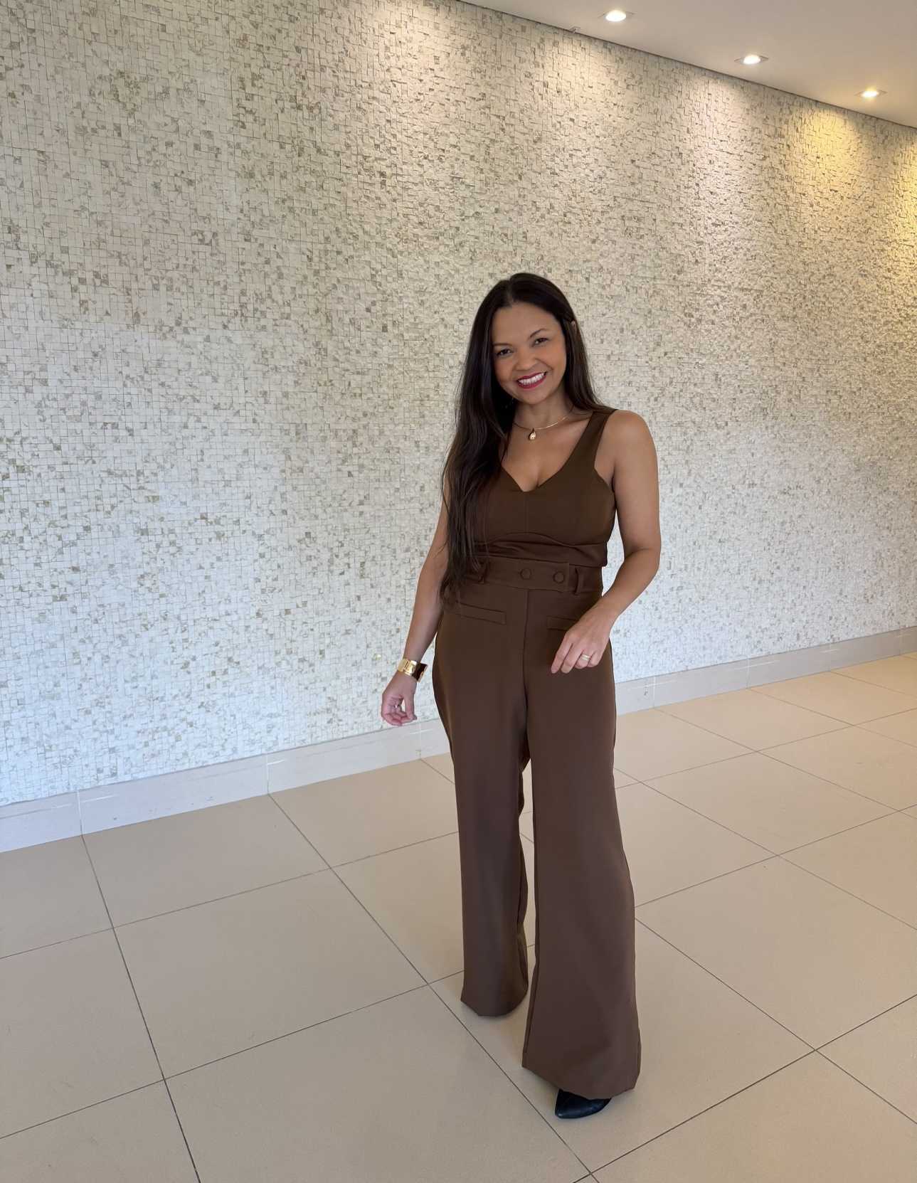 Conjunto em tecido crepe , cropped com lastex nas costas e alça larga