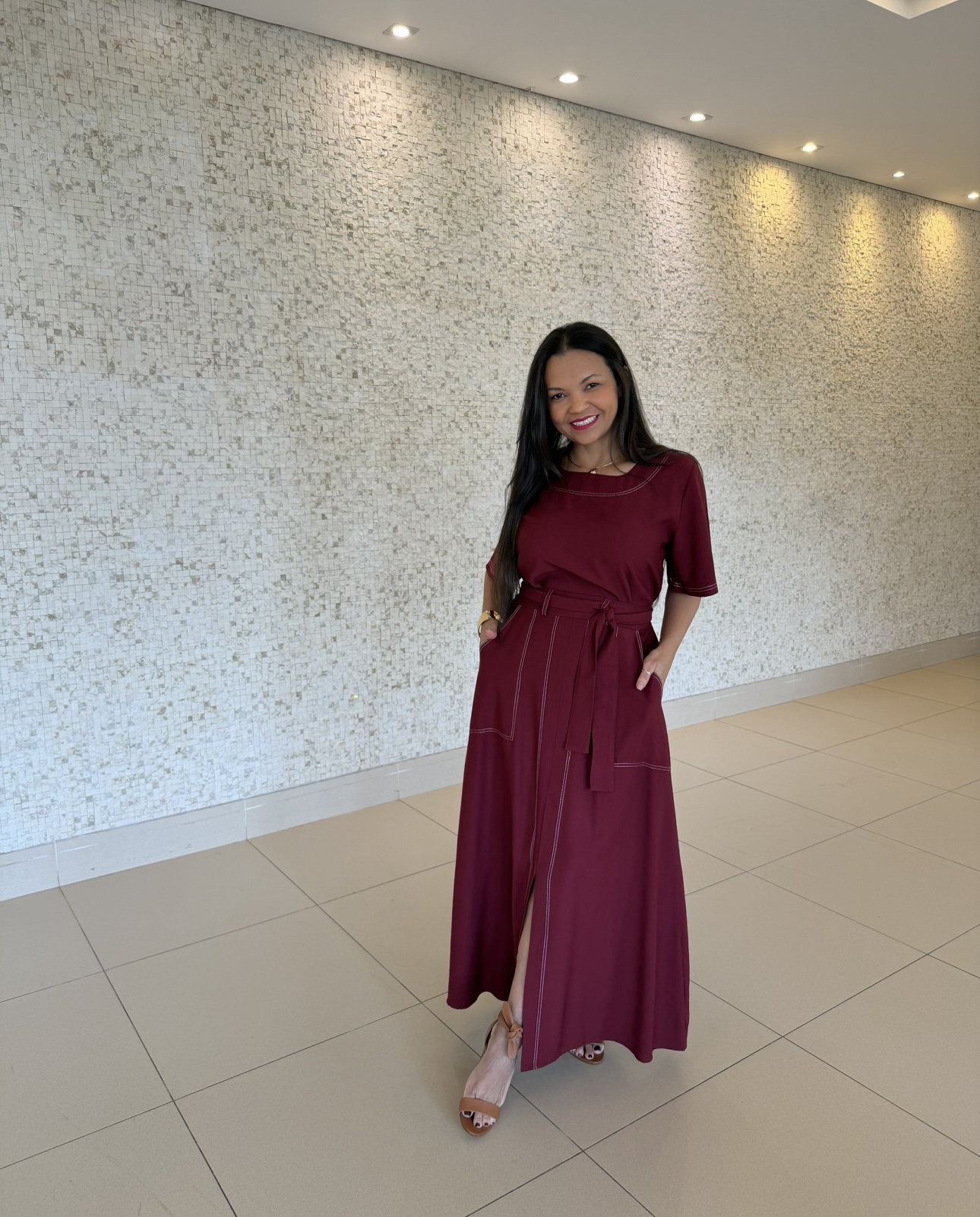 saia com meio cos elástico , bolsos frontais