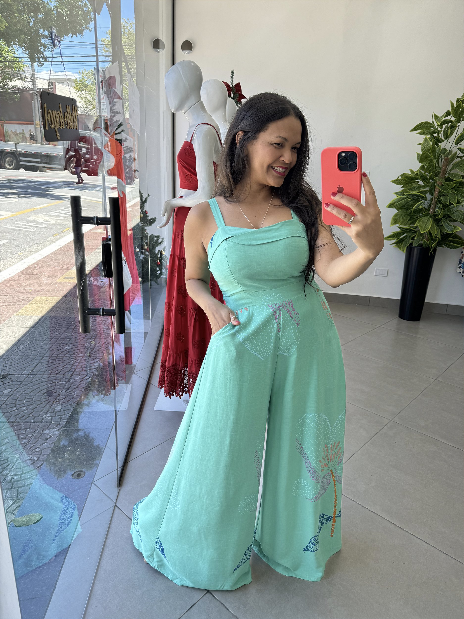 Macacão em tecido levinho em viscolinho, bojo , alça regulável, lastex nas costas