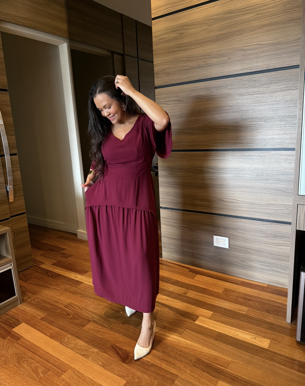 Vestido em tecido leve , viscolinho , mangas soltinhas , decote não é cavado