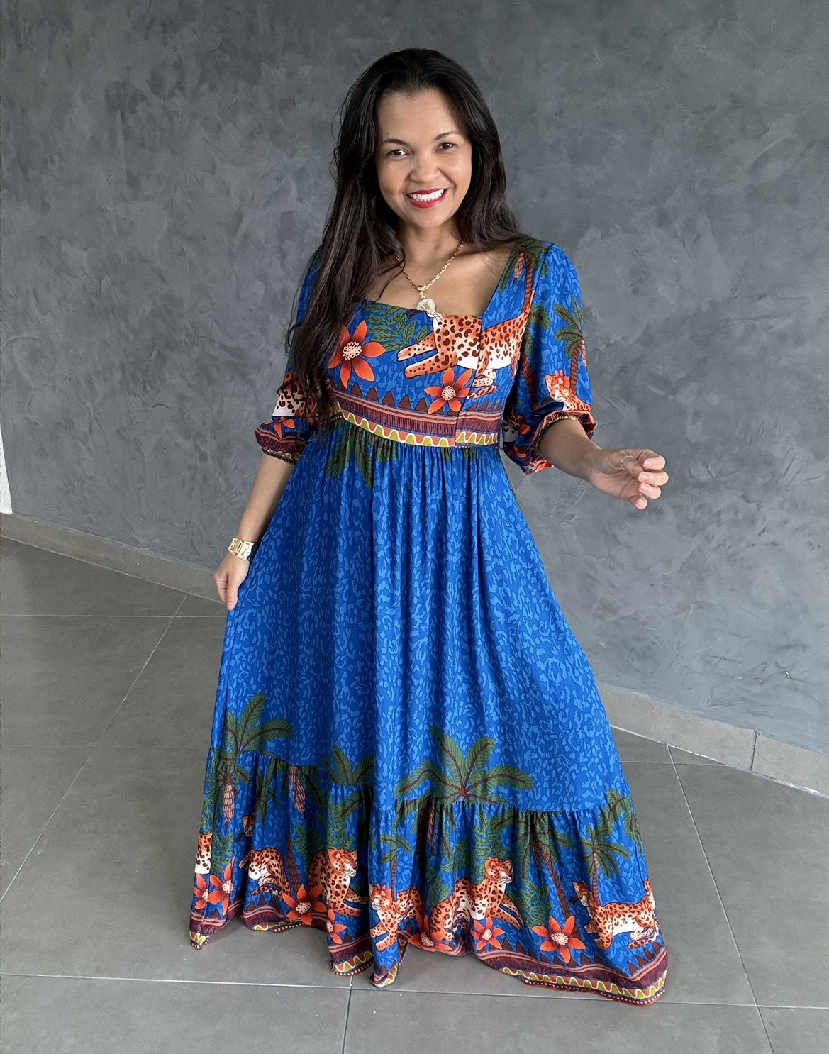 Vestido em tecido viscolinho , mangas com elástico e lastex na região das costas Tamanho Único Veste do 38 ao 44-46